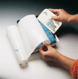 Buchschutzfolie glänzend, glasklar, 70 µm Weich-PVC, reduzierte Anfangsklebkraft, korrigierbar.