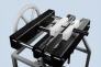 Die Backen mit einer Breite von 12,5 cm und einer Fläche zwischen den Stahlrohren von 43 cm laufen absolut parallel durch seitlich an den Standrohren angebrachten Säulenführungen.